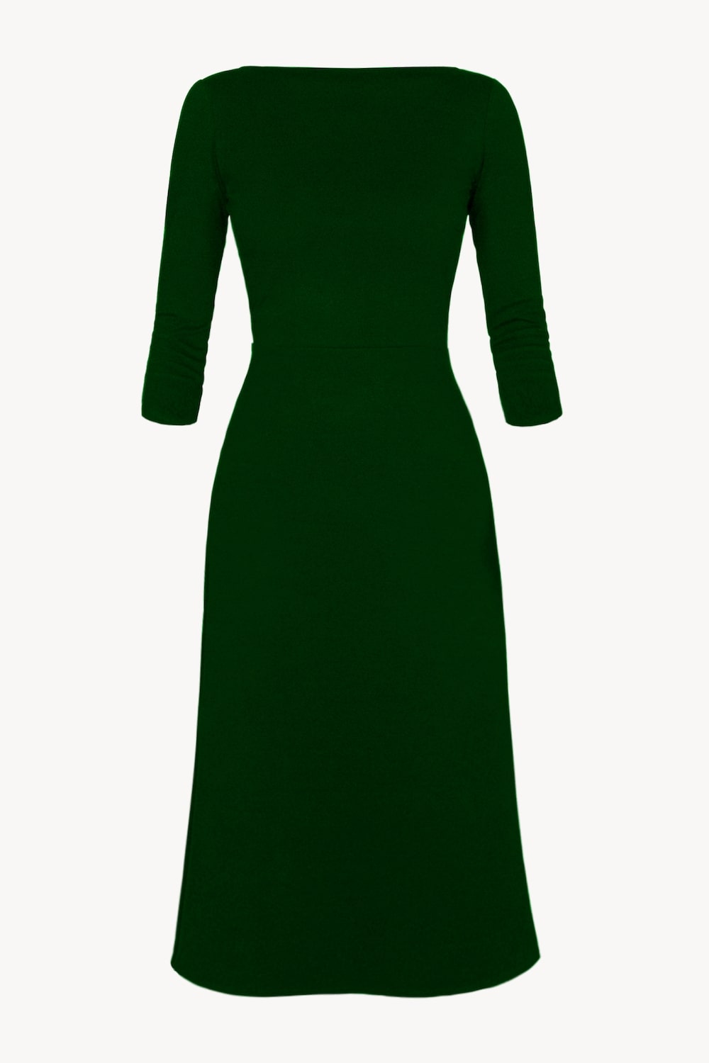 3/4 Sleeve BCI Cotton Boatneck Mid-calf Flared Dress -- Forest Green