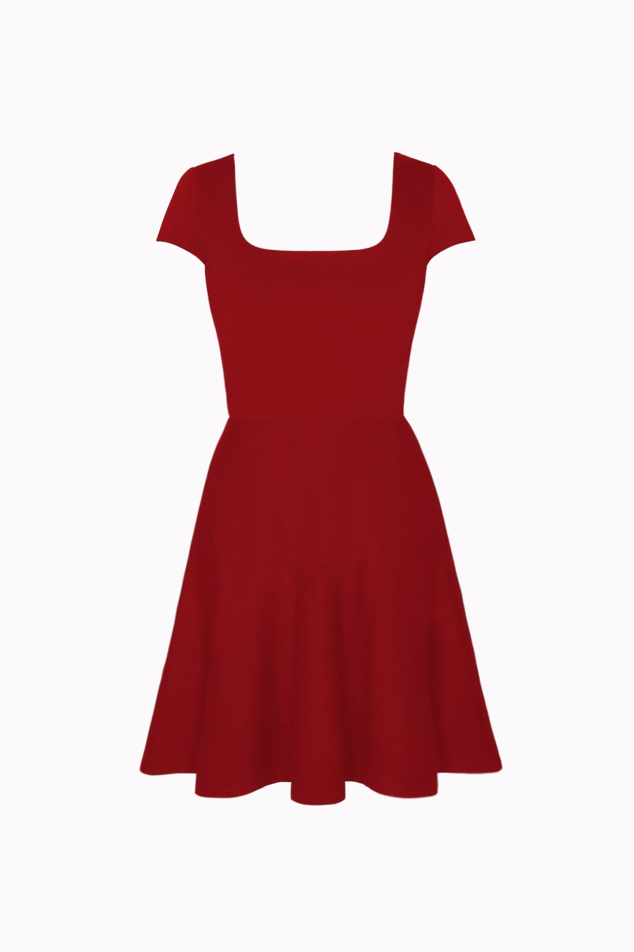 BCI Cotton Square Neck A-Line Mini Dress -- Red