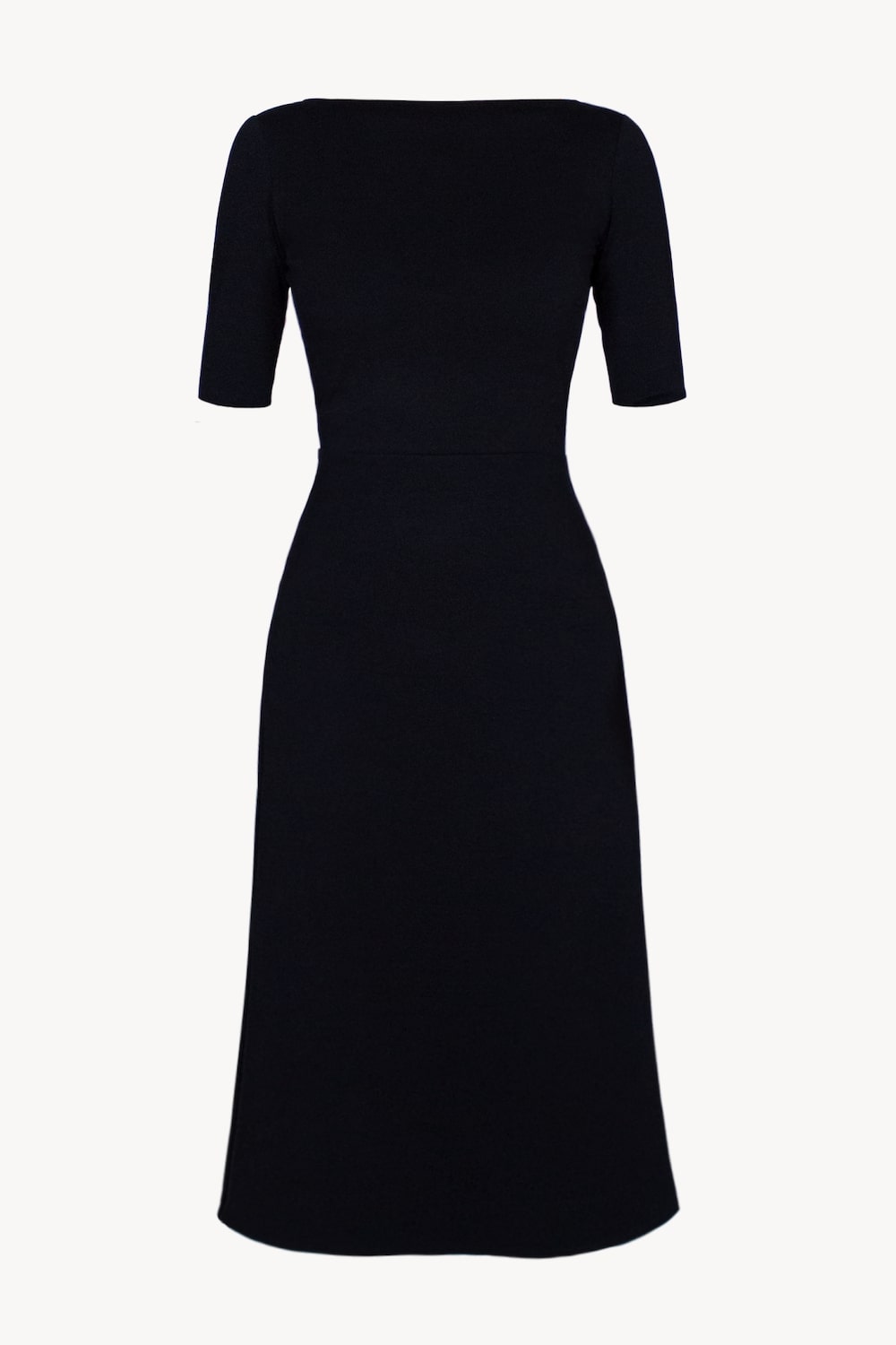 Half Sleeve BCI Cotton Boatneck Mid-calf Flared Dress -- Black