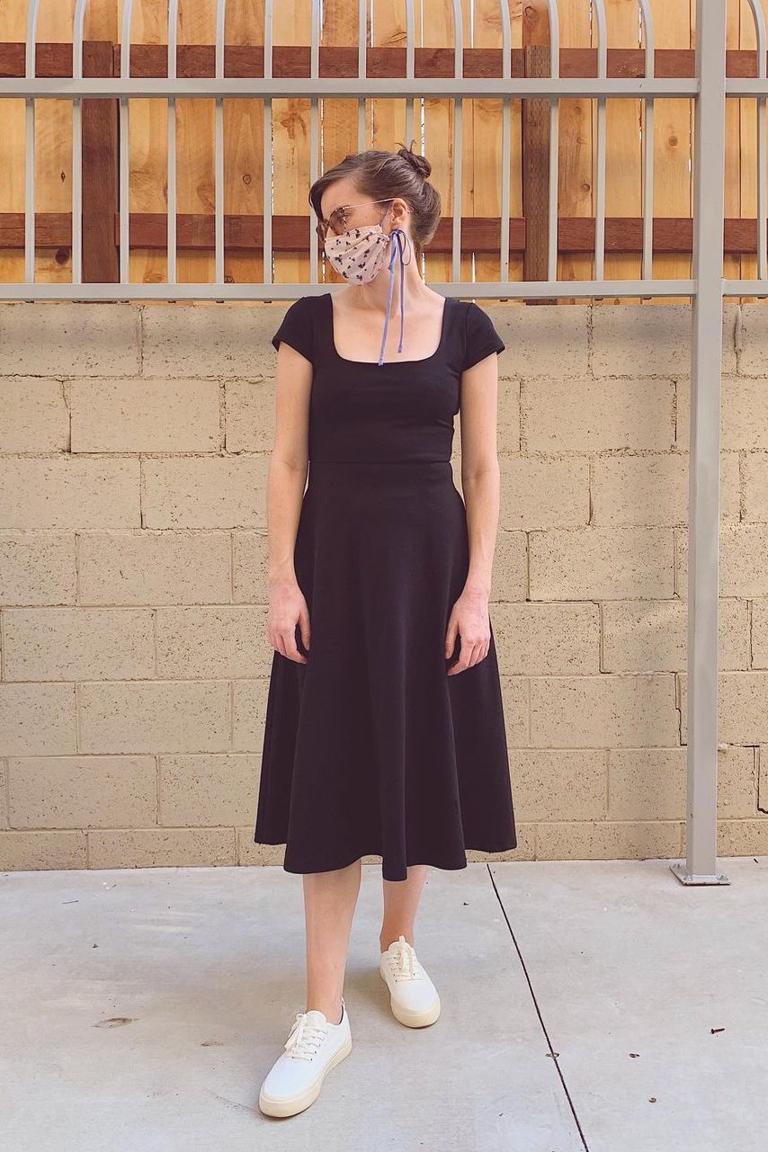 A unique square neck and roomy pockets make this the perfect dress for many occasions. Made with sustainable BCI Cotton interlock knit fabric.